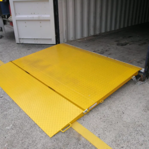 „SE Equipment“ konteinerių rampa standartiniams konteineriams ant žemės paviršiaus ir sunkvežimių pakrovimui / iškrovimui.